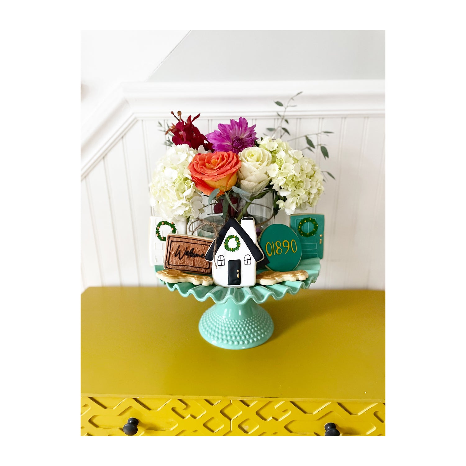 Custom medium 6x6 round arrangement accompanied by a sweet treat of your choice!